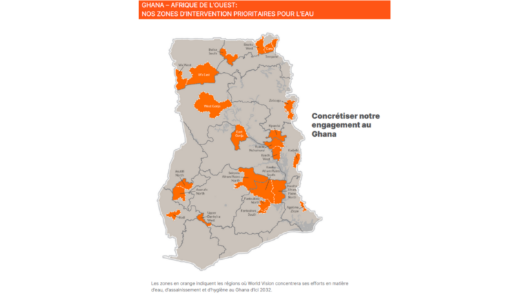 Au Ghana, 4 millions de personnes n’ont pas accès à l’eau potable de proximité. World Vision œuvre au Ghana depuis 1985, pour améliorer l’accès à l’eau et à l’assainissement, essentiels pour la santé, l’alimentation et l’éducation. Depuis le début de nos interventions, c’est plus de 4 000 points d’eau construits et 1,5 million de personnes ayant accès à une eau potable durable. Continuons sur cette lancée ! Chaque point d’eau coûte 15 000 € et bénéficiera à 300 personnes.